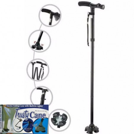 Enhance your mobility with the Trusty Cane, a sturdy and foldable walking aid featuring built-in LED lights for added safety and convenience.